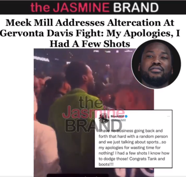 Meek Mill Says Sorry After Interrupting Gervonta Davis Fight Due To Altercation w/ Boxer Gary Russell Jr.: My Apologies, I Had A Few Shots [VIDEO]