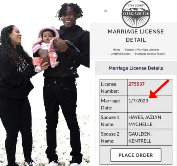 According to reports, a copy of a Utah County marriage license dated January 7 surfaced on social media on Sunday (January 8). While the newlyweds haven’t confirmed their nuptials online, the photo lists the pair’s full names — spouse one as Jazlyn Mychelle and spouse two as Kentrell Gaulden.