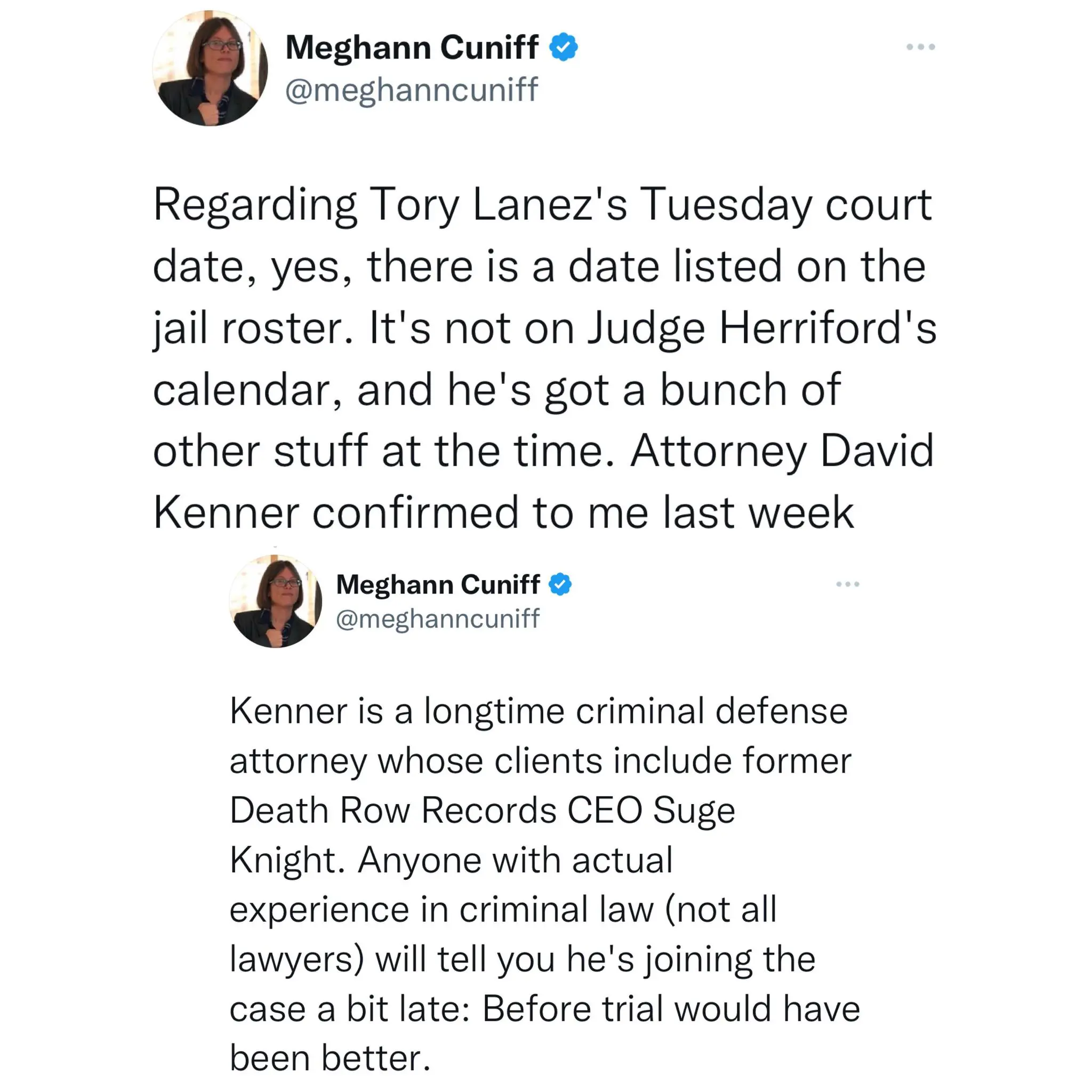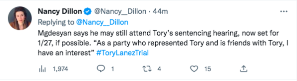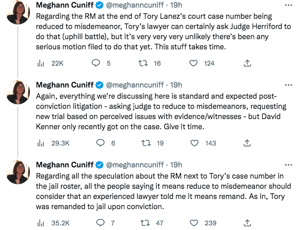 “To be clear: We really have no idea what this is, and there is no way any serious post-conviction motion would be filed and heard this quick. Tory was convicted on Dec. 23 and there was a huge holiday break. There is no way there’s been a serious motion fully briefed.”