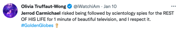 Still, neither Carmichael nor new diversity policies were enough to boost numbers. Reportedly, the show was almost at an all-time low for the Golden Globes. Back in 2008 the writers’ strike reportedly saw only 6 million tuning in. Additionally, the report notes the annual ceremony typically airs on a Sunday, which could have played a role in viewership as well.