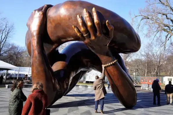 One person who has a major problem with the statue is Seneca Scott, a community organizer in Oakland, California, and cousin of Coretta Scott King. Scott has slammed the $10 million statue titled ‘The Embrace’ by stating that it “looked like a penis” from certain angles.