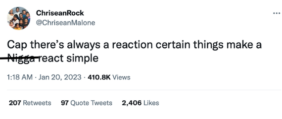 “Cap there’s always a reaction certain things make a n*gg* react simple.”
