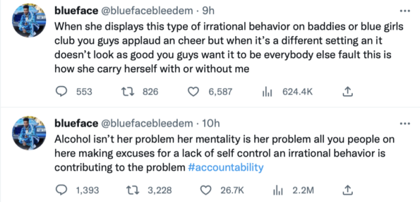 “Alcohol isn’t her problem her mentality is her problem all you people on here making excuses for a lack of self control an irrational behavior is contributing to the problem #accountability”