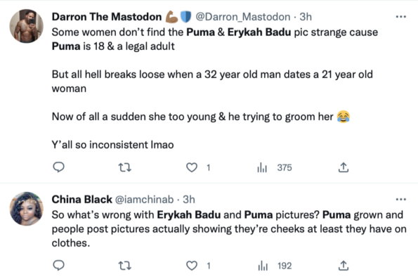 “I posted a pic (not my mom) if me and my mama badu in some cute form fitting pants. I’m an adult. What’s the real issue? Let’s discuss/ -pumacurry”