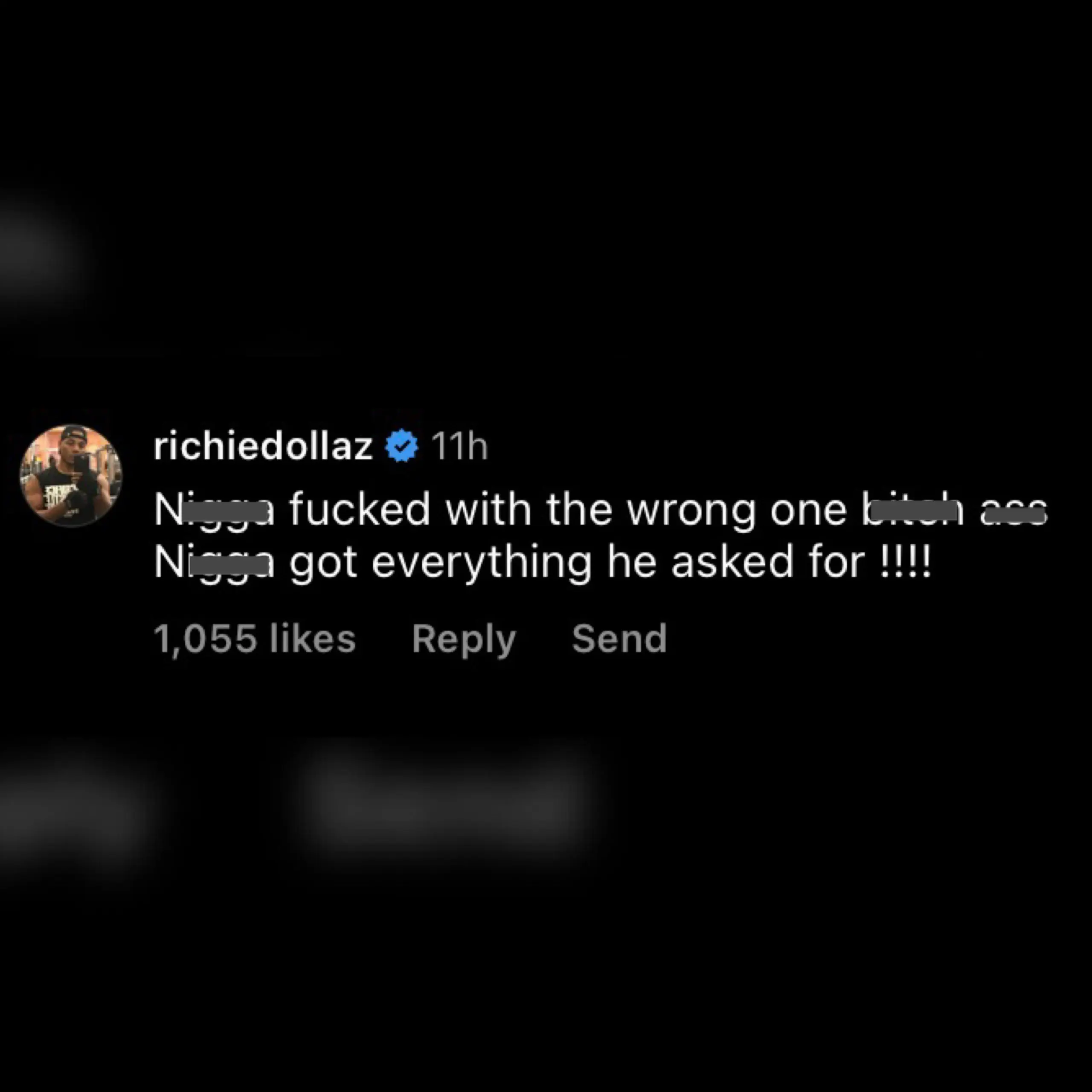 “N*gga f*cked with the wrong one b*tch a** N*gga got everything he asked for!!!”