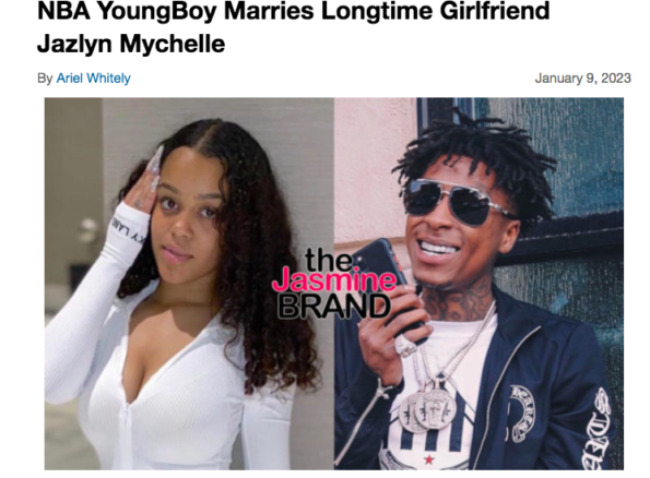2023 may just be a big year of change for YoungBoy. As previously reported, Last month the rapper married his partner Jazlyn Hayes Mychelle. A copy of a Utah County marriage license dated January 7 surfaced on social media. The love birds share two children – 1-year-old daughter Love Alice Gaulden and their 3-month-old son – together. YoungBoy is also the father to eight other children.