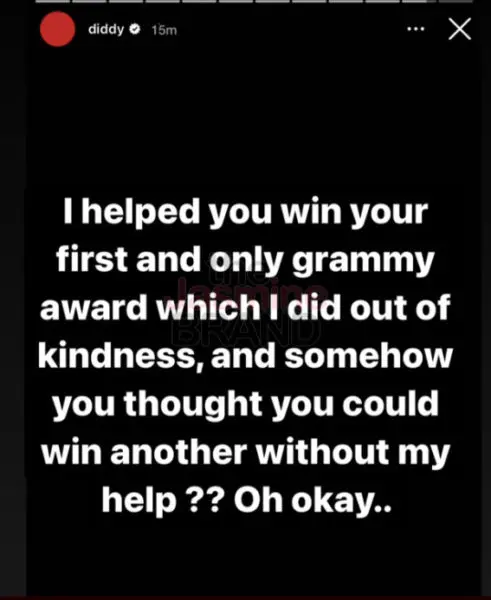 Diddy Shades Artist w/ Cryptic Post-&-Delete: I Helped You Win Your First & Only Grammy Award
