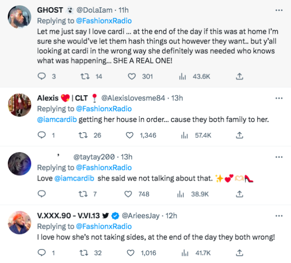 Social media users have since reacted to the leaked audio of Cardi B, with many praising the “Tomorrow 2” rapper for de-escalating the situation.
