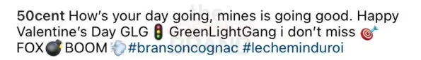“How’s your day going, mines is going good. Happy Valentine’s Day GLG. GreenLightGang i don’t miss. FOX. BOOM”