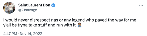 “I would never disrespect nas or any legend who paved the way for me y’all be tryna take stuff and run with it.”