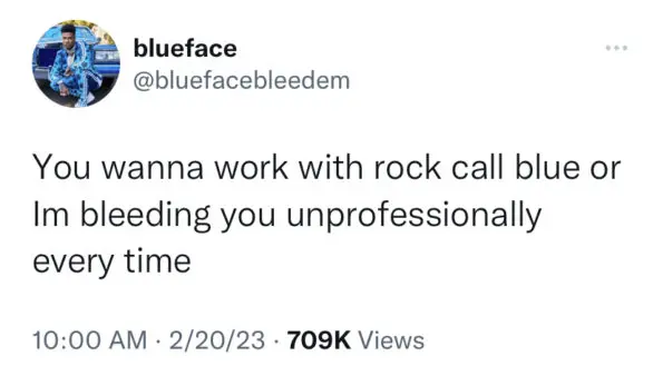 “You wanna work with rock call blue or Im bleeding you unprofessionally every time”