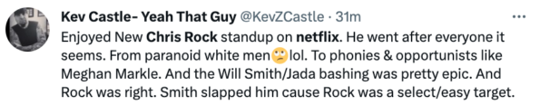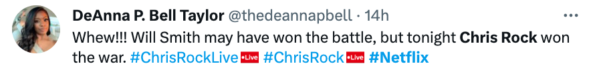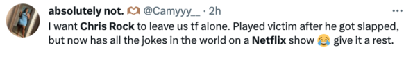 Overall, Rock’s special has gotten mixed reviews online. While some hailed the TV and film star for thrashing Smith and his wife’s actions. Others, however, seem to feel the 7-minute roast was unhealthy on Rock’s end.