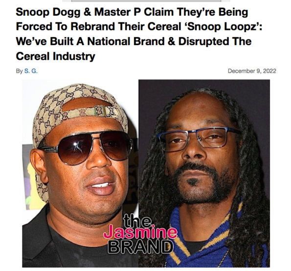 Snoop Dogg, real name Calvin Broadus Jr., is no stranger to the business world and entrepreneurship. As you may recall, he has a cereal brand with rapper Master P called Snoop Loopz. Earlier this year, the men revealed they were being pressured by larger cereal companies to change the name of their brand over possible confusion it may bring consumers. Master P shared at the time,