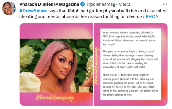 It seems Drew Sidora highlighted her expectations that Ralph Pittman pay all the debt he racked up allegedly over his multiple mistresses by himself.