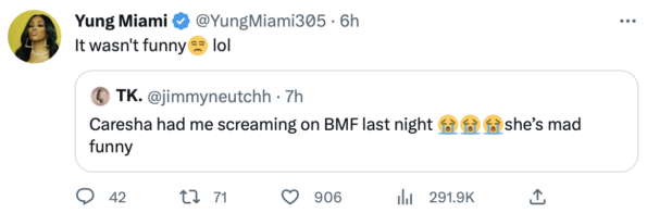 “Caresha had me screaming on BMF last night. she’s mad funny.”