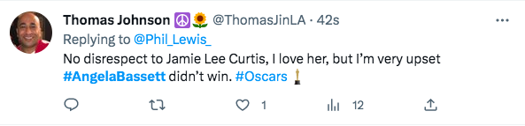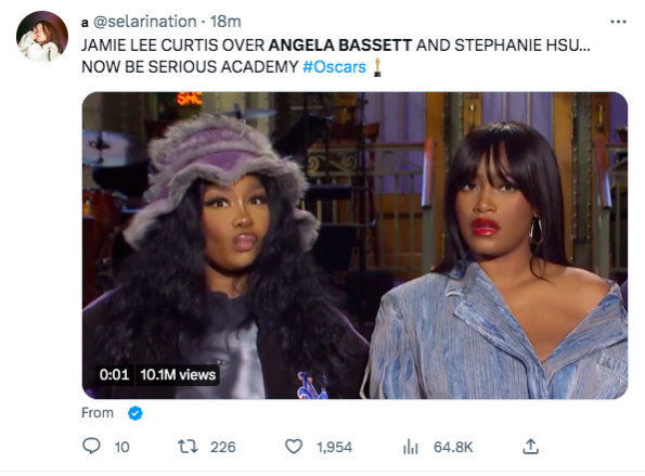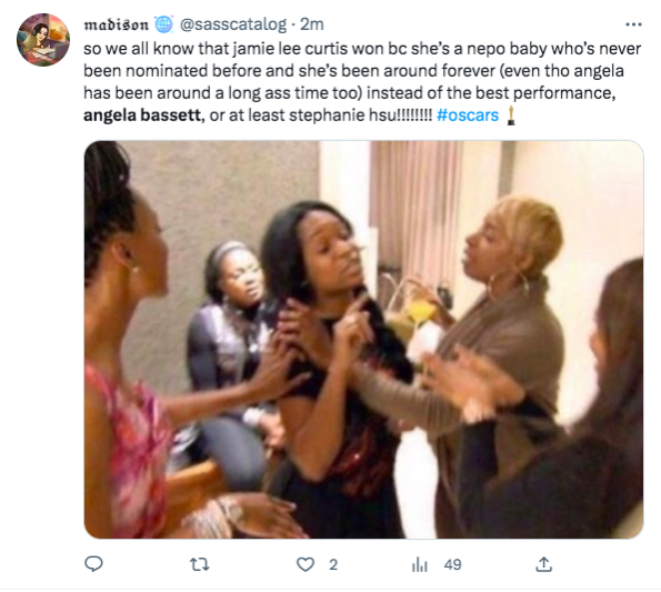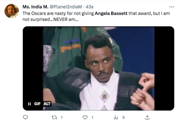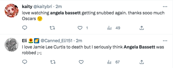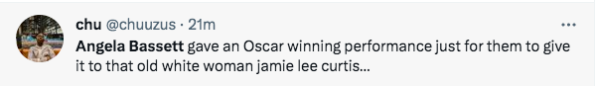 As expected, many social media users wasted no time sharing their thoughts on the “Best Supporting Actress” category and letting it be known that Angela Bassett should have won. One Twitter user said,