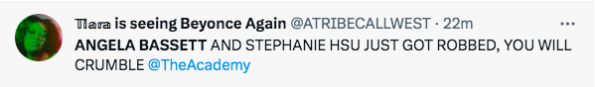 “She will always be an Academy-Award winning in my eyes idc! Legendary Angela Bassett, they playing in my auntie’s face too much!”