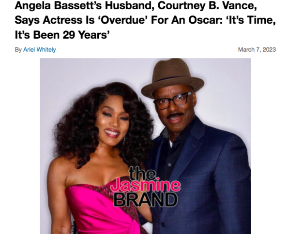 This is the second time Angela Bassett has been nominated for an Oscar. Her first nomination was for “Best Actress” due to her portrayal of Tina Tuner in the 1993 biopic “What’s Love Got To Do With It?” As previously reported, Angela Bassett’s husband, Courtney B. Vance, recently advocated for his wife to take home her first Oscar win. During a recent interview, he said,