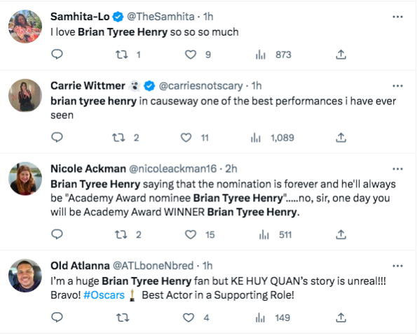 Brian Tyree Henry’s fans are rallying around him tonight after he didn’t win the award for “Best Supporting Actor.”