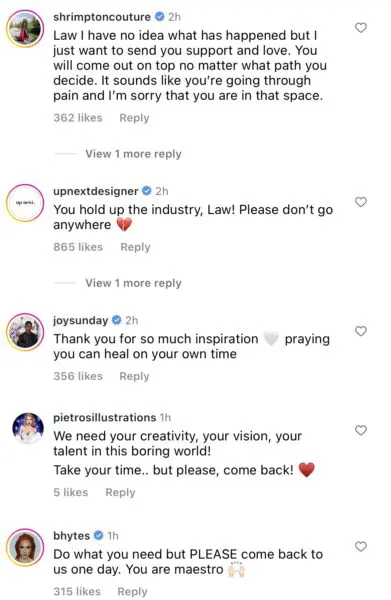 Several fans and celebrities flooded the comment section with love and support while also pleading for the fashion icon to reconsider his decision.