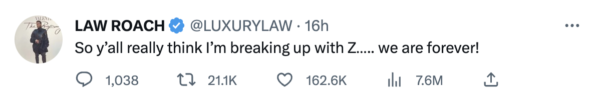 “So y’all really think I’m breaking up with Z….. we are forever!,