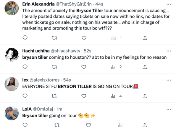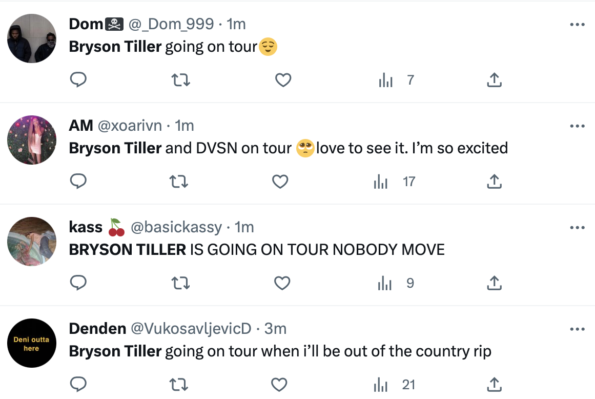 Fans are very excited to hear about Bryson Tiller’s upcoming tour. The artist is currently trending as his supporters chat about which city they hope to see him in and what songs he’ll possibly perform. However, some have expressed anxiety over the lack of details — at the moment — for the tour, with one user asking,