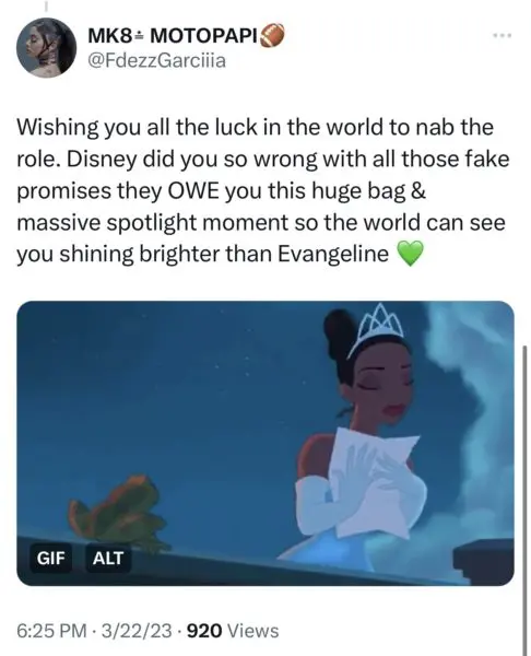 “Hi @Disney I’m Ari Lennox and I would love an opportunity to audition for Princess and The Frog in person. Here’s #AlmostThere By Anika Noni Rose”