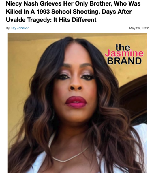 In the wake of the Nashville Christian School incident that claimed the lives of 6, actress Niecy Nash took to social media to mourn the lives lost, as well as her brother who was killed in the same manner back in 1993.