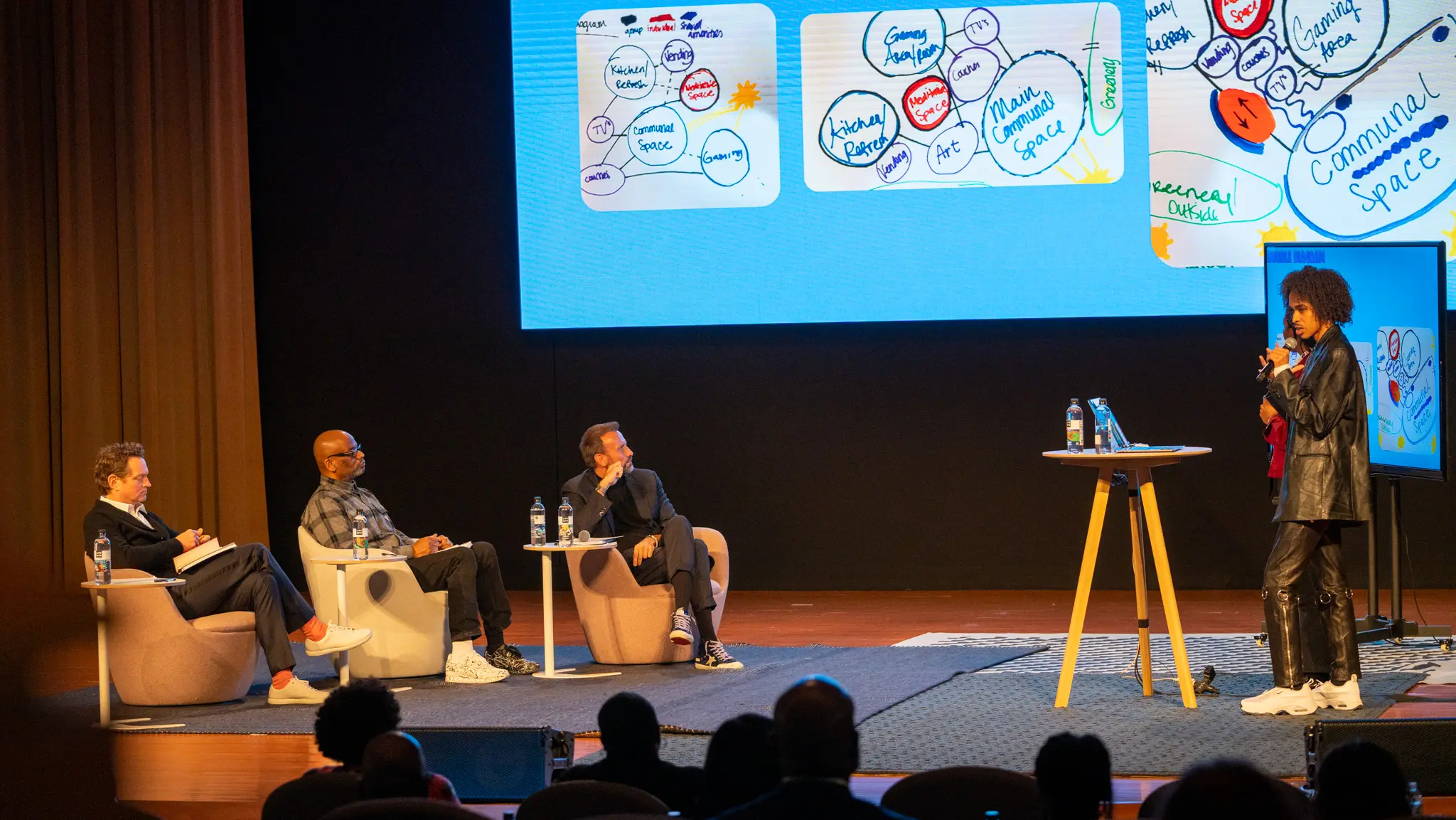 Porcini was one of several mentors sharing their feedback on students’ final lounge concepts, joined by Pensole Lewis Founder Dr. D’Wayne Edwards, a former JORDAN Brand Footwear Design Director spearheading Pensole Lewis’s efforts to expand diversity in the industry; MillerKnoll SVP of Global Real Estate, Architecture and Development Matthew Stares, an executive at one of the world’s most renowned collective of design brands that is also providing product for the lounge; and radio personality Angela Yee, who has brought her own developed eye for design to Detroit real estate.