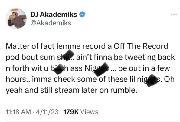Since the announcement, DJ Akademiks has received lots of criticism for joining Rumble. It appears the media personality got sick of his naysayers and decided to fire back. Earlier today (Apr. 11) Akademiks took to Twitter and wrote: