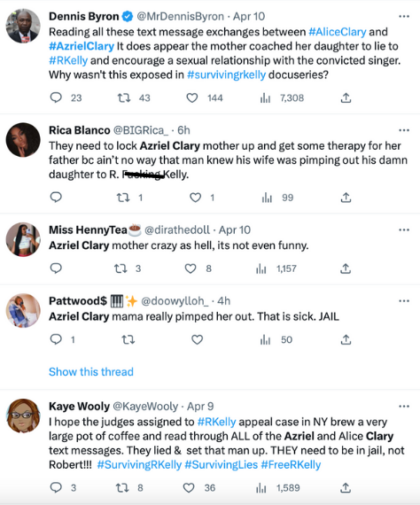 Many social media users are currently searching for clarification after disturbing text messages allegedly between R. Kelly’s former girlfriend Azriel Clary and her mother surfaced on the internet on Monday (Apr. 10).