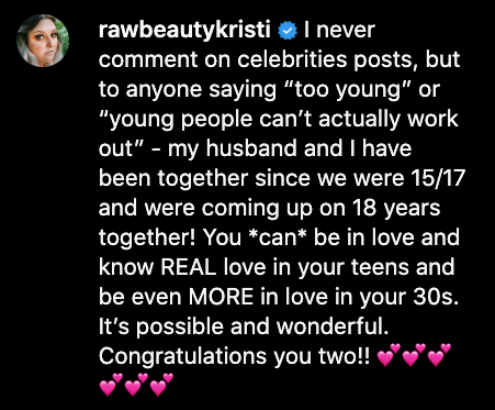 The heartwarming moment has garnered a lot of reactions online. Many of Brown’s nearly 63 million followers commented congratulating the pair, defending their decision to wed relatively young. Others offered a more pessimistic view, noting the perceived importance of age in marriage.