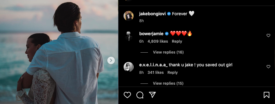 Jake Bonjiovi, son of famed rock star Jon Bon Jovi, simultaneously posted photos of the two around the same time. Reportedly, the celebrity kid initiated the relationship, sliding into Brown’s Instagram DMs for a chat. The pair reportedly formed a close friendship and went social media official shortly after.
