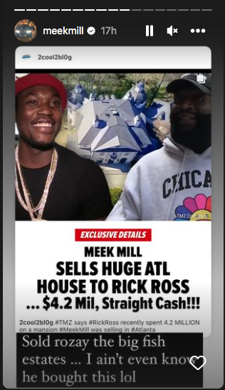 Meek Mill Shocked To Learn Rick Ross Was The Buyer Of His $4.2 Million Massive Atlanta Home He Never Got The Chance To Live In