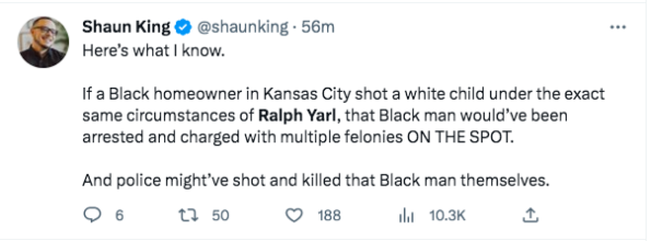 “#RalphYarl. My goodness…let’s be for justice, which is a continuum. That means the man who did this should be charged AND we need to work for the legislative and heart change to prevent these tragedies. “