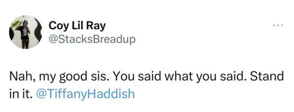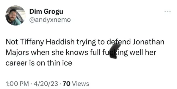 “Not Tiffany Haddish trying to defend Jonathan Majors when she knows full f**ing well her career is on thin ice. “