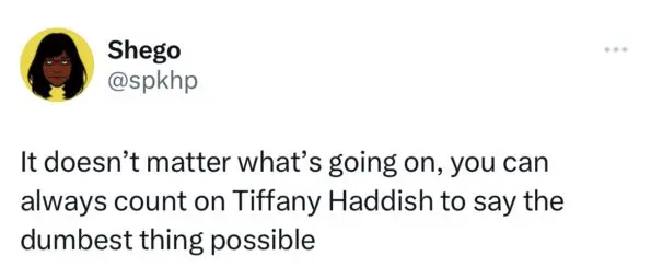 “Tiffany Haddish been trash and constantly reminds us she’s hot garbage.”
