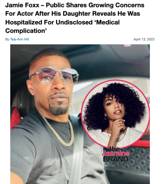 “From the Foxx Family: We wanted to share that, my father, Jamie Foxx, experienced a medical complication yesterday. Luckily, due to quick action and great care, he is already on his way to recovery.”