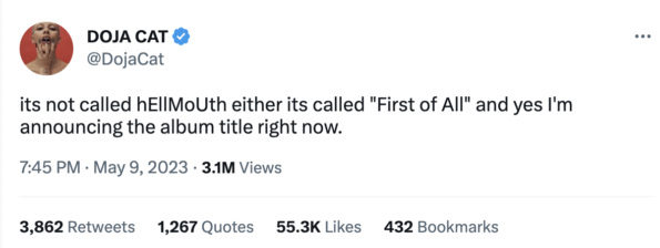 “its not called hEllMoUth either its called “First of All” and yes I’m announcing the album title right now.”