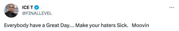 “Everybody have a Great Day…. Make your haters Sick. Moovin”