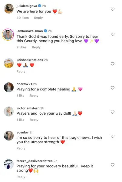 Bravo fans and social media users flooded the reality star’s comment section with remarks wishing her well through her healing process. Included in the positive comments was Guerdy’s “RHOM” co-star Julia Lemigova, 50, who commented: