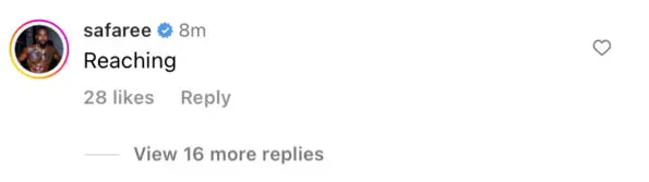 However, following the interview clip making its rounds online, Safaree took to the comment section to seemingly deny any claims that he was referring to his ex-girlfriend Nicki Minaj. He wrote,