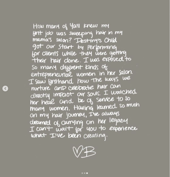 “How many of ya’ll knew my first job was sweeping hair in my mama’s salon? Destiny’s Child got our start by performing for clients while they were getting their hair done. I was exposed to so many different kinds of entrepreneurial women in her salon.”