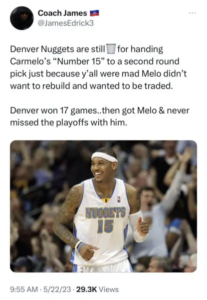 — Carmelo Anthony (@carmeloanthony) May 22, 2023