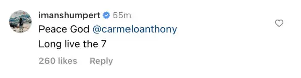 Fellow NBA players also took to Carmelo’s comment section to drop off a few words following his announcement. Former basketball player Iman Shumpert wrote,