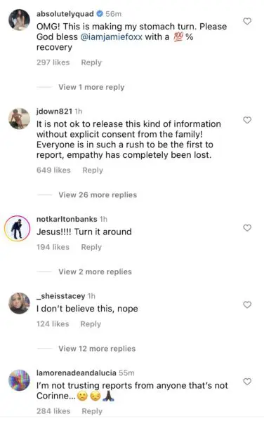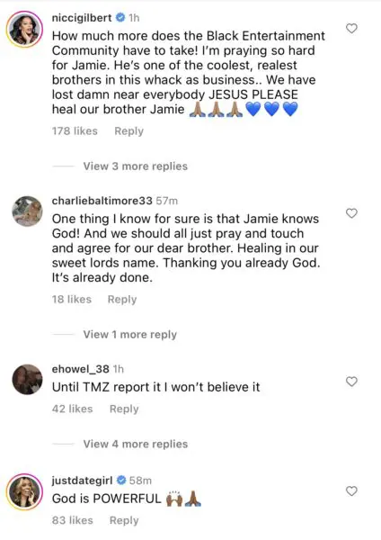 Foxx has remained mostly quiet during his medical scare. However, the movie star did take to his social media to thank all those sharing well wishes. Celebrities and fans alike have all come forward, expressing their prayers for a speedy recovery. In response, the actor wrote: