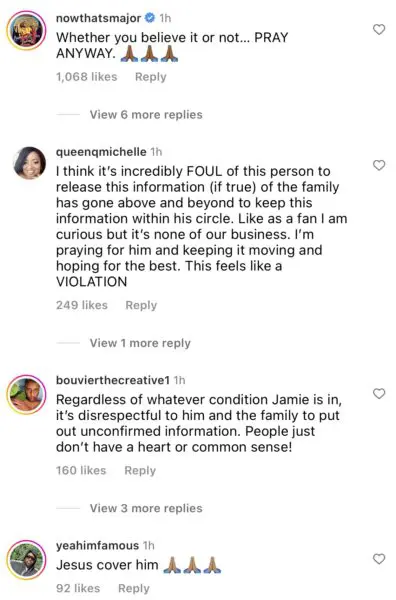“Regardless of whatever condition Jamie is in, it’s disrespectful to him and the family to put out unconfirmed information. People just don’t have a heart or common sense!”
