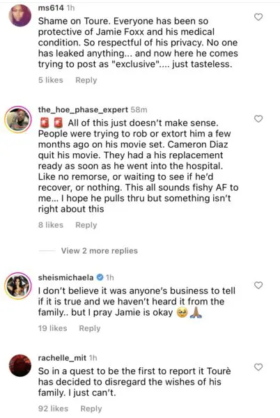 Naturally, fans grew concerned after receiving this latest update. Many felt it was irresponsible for Touré to share this news without the family’s permission.
