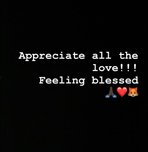 “Appreciate all the love!!! Feeling blessed”