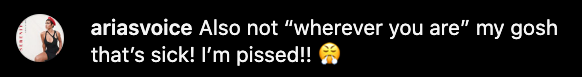 “Also not ‘wherever you are’ my gosh that’s sick! I’m pissed!!”